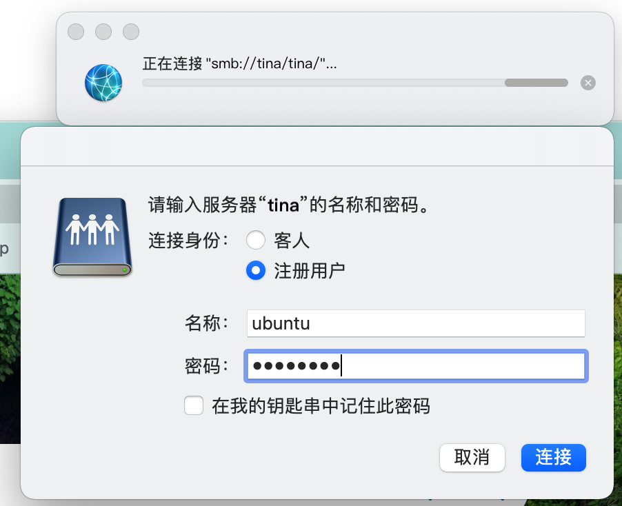 my_name是主机上共享文件夹的用户. 在终端中会被要求输入密码, 输入就完成了.