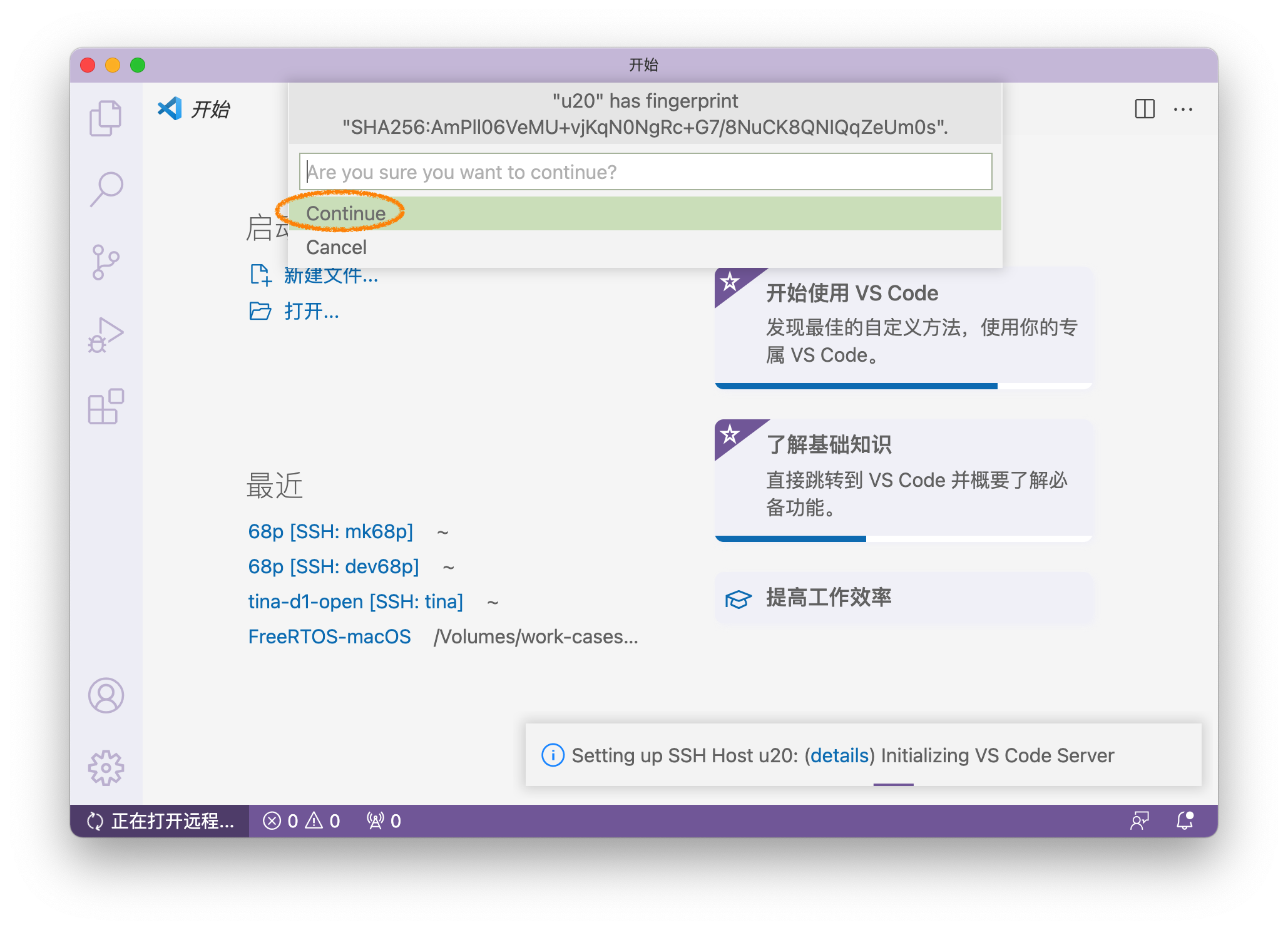 ssh 是安全加密的通信方式。虽然 multipass 提供了 shell (sh)命令可以快速切入虚拟机的终端,但 VScode 等其他应用使用的还是标准ssh。